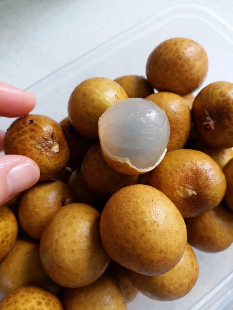 竜眼は小粒ですが、ライチによく似ています。でも香りとか、食べたボリューム感とかは違うのですが…。これはタイからの輸入品です。