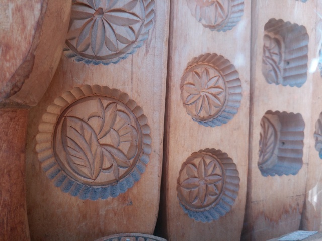 中国の分厚いまな板や月餅に使えそうな木の型や…。