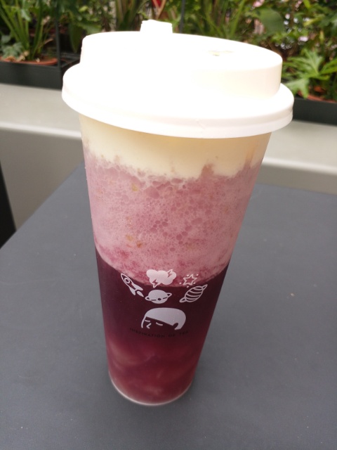 それでもって、大ハマり中の“喜茶”(記事→人気のお茶カフェがオープン!・ドリンク<海上世界>HEY TEA・喜茶)で、試したかった、“多肉葡萄”28元(450円)を飲んでみました。