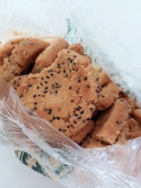 これはゴマ入りで風味もよくなかなか。残念なのはボロボロ崩れやすくて、「袋の中の1/3は粉状に戻ったのではないか?」というほど持った先から、食べた先から崩れていく事(^▽^;)