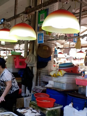 市場内のこんなお店にまでほら上!上!頭上にQRコードΣ(゚д゚)!!