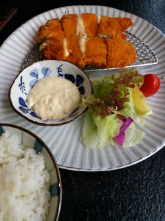 ランチのチーズカツ定食を注文しました。(50元しないくらいだったような…800円くらいでしょうか…価格も日本のランチですね)←カツはよくあるけれど、チーズが入っているのが珍しくて。