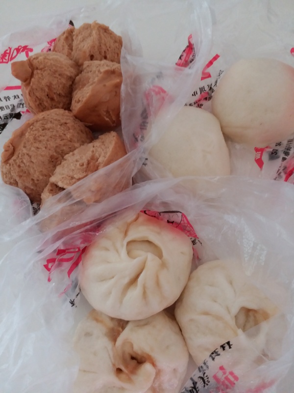 鮮肉包と紅糖燕麦饅头と紅豆沙。1つ1.5元(24円)7個買ったので、10.5元(170円)